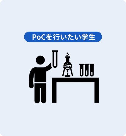 まだ起業の検討段階の学生を対象としているため、PoCによって起業の決断がしやすい環境を創ります。