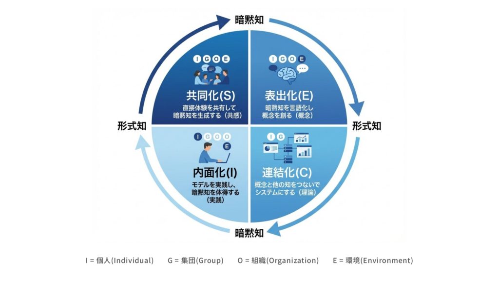 ※暗黙知を言語化し、結合し、実践を通じて再び組織知へと循環させる知識創造理論